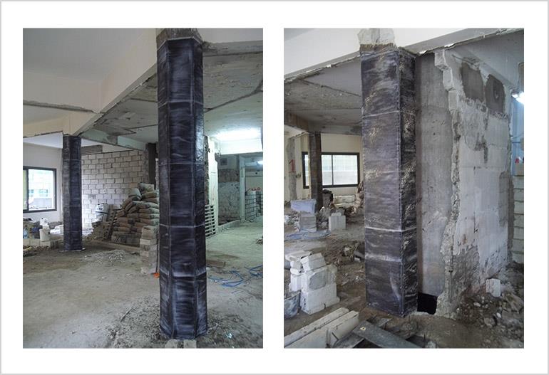 Fibrwrap Lebanon was able to complete the project in only one week completely satisfying the client requirements for a fast, reliable and economical solution. Also all architectural limitations in regard with dimensions were met due to the negligible increase of thickness of the structural elements.