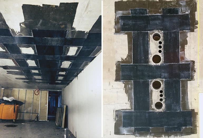 • Slab strengthening for service penetrations using Tyfo SCH Carbon Fibre Systems