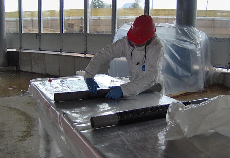 The technical solution entailed the application of Tyfo Carbon Fibrwrap Systems in order to provide additional transverse reinforcement at certain sections of specific T-Beams. The Tyfo Carbon composite system used consisted of Tyfo SCH-41 Carbon fiber with Tyfo S-Epoxy and Tyfo Carbon Anchors specially made for this project.