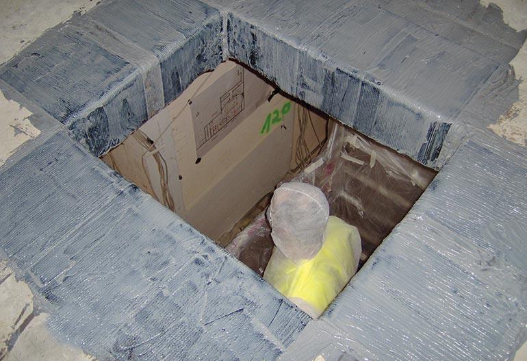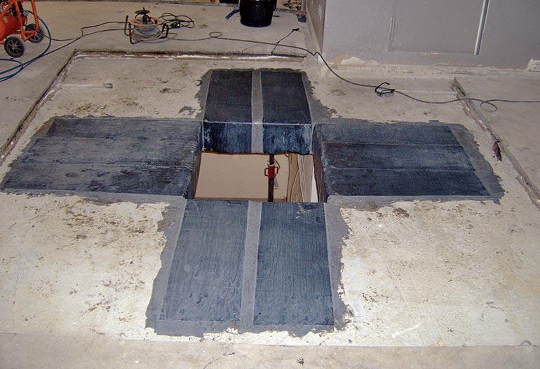 Fibrwrap Construction Deutschland was assigned the project to apply Carbon FRP at all sides of the opening at the top and the bottom of the slab. Overall 5 layers of FRP were applied with the dry application method according to the design.