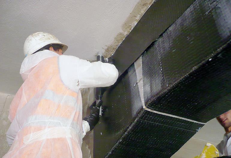 • Tyfo Fibrwrap UC carbon strips type L & M on the bottom part of the slabs