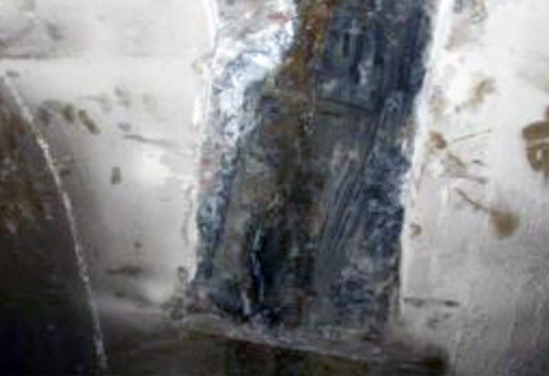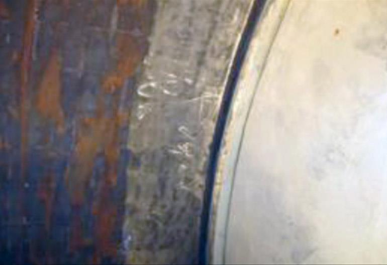 The mortar where the existing leak occurred was removed and provided with thickened grout to fill the gap between the flanges.