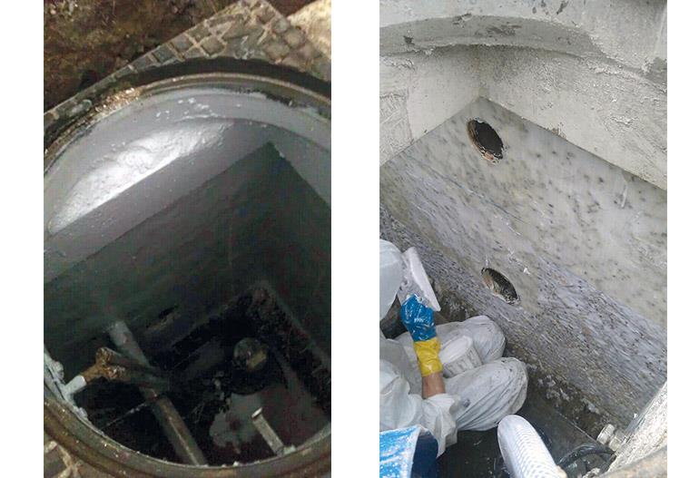 A pumping station, due to exposure of high levels of H2S gas from several incoming pressure pipelines, suffered from concrete surface deterioration.