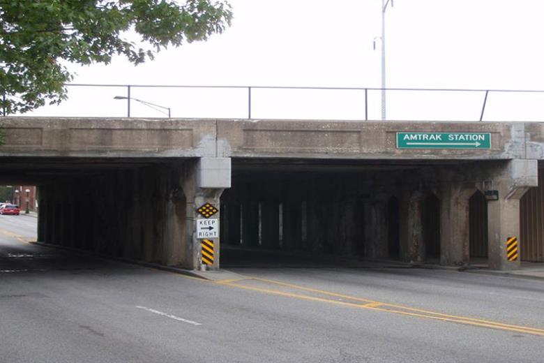 The girders required corrosion treatment coupled with patching using the Tyfo® P Epoxy Mortar to restore the girder section. The patched areas were then wrapped with the glass-based Tyfo® SEH-51 Composite System. The composite was utilized as a "structural band-aid" over the overhead patched areas.