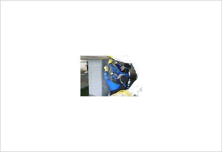 Many of the square concrete piles were repaired and wrapped with the Tyfo® SEH-51A System incorporating the underwater-curing Tyfo® SW-1 Epoxy. The piles were wrapped from the mud line to the deck and divers were required to install the system on 18 piles.