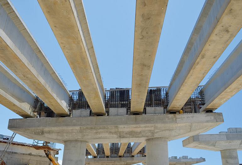 A bridge pier and twenty-four (24) pre-stressed beams (31m long) of the bridge connecting Egnatia Highway with the commercial port of Thessaloniki in northern Greece were in need of strengthening due to changes during construction.