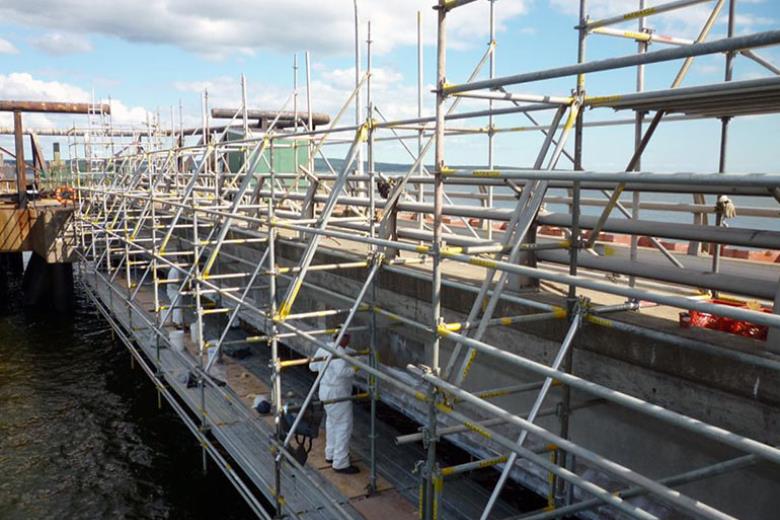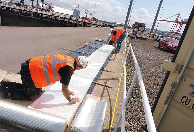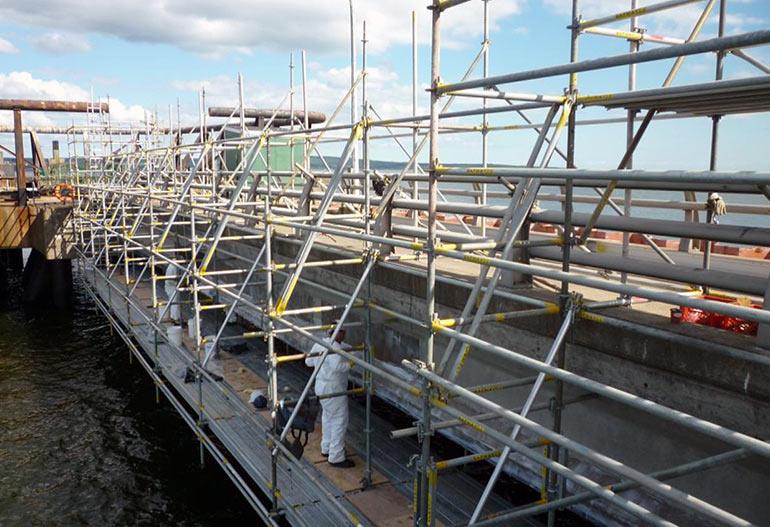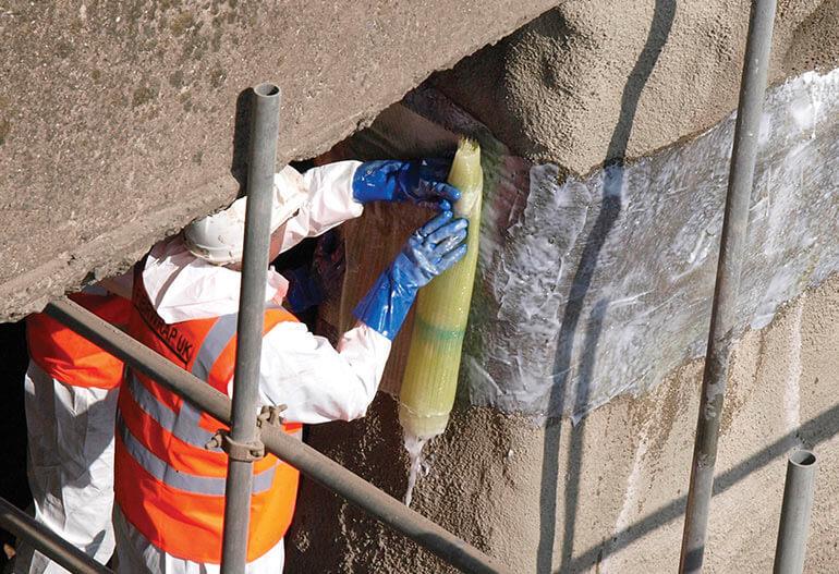 Due to the great success in 2012 when we provided coastal erosion protection to 3 x smaller support columns, Bristol Port Company immediately saw the value in extending the life of these vital support columns at the entrance to the port at Avonmouth. The pier columns when cast where considerably larger than the reduced size of 10m high, 3m wide and 1m thick. To ensure no further erosion we wrapped these columns with Tyfo Systems epoxy. First we cleaned and re-shaped the columns by Hydro Blast and sprayed concrete, before wrapping the columns completely with two layers of Tyfo SHE system with Tyfo SW1-S Marine Epoxy.